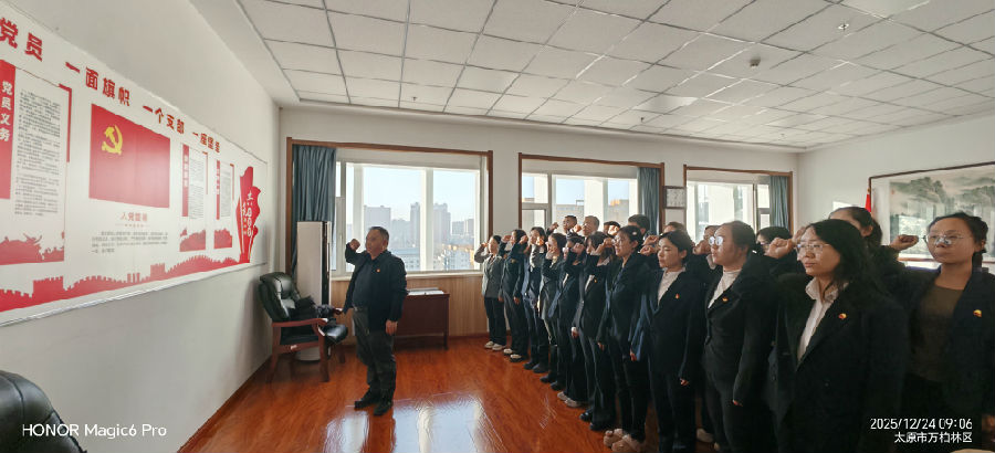 12月24日,山西省注册会计师资产评估行业党委组织20名新发展党员集体入党宣誓,大家面向党旗、高举右拳、庄严宣誓,铿锵有力的声音表达着对党的深厚感情和为共产主义事业奋斗终身的决心。
