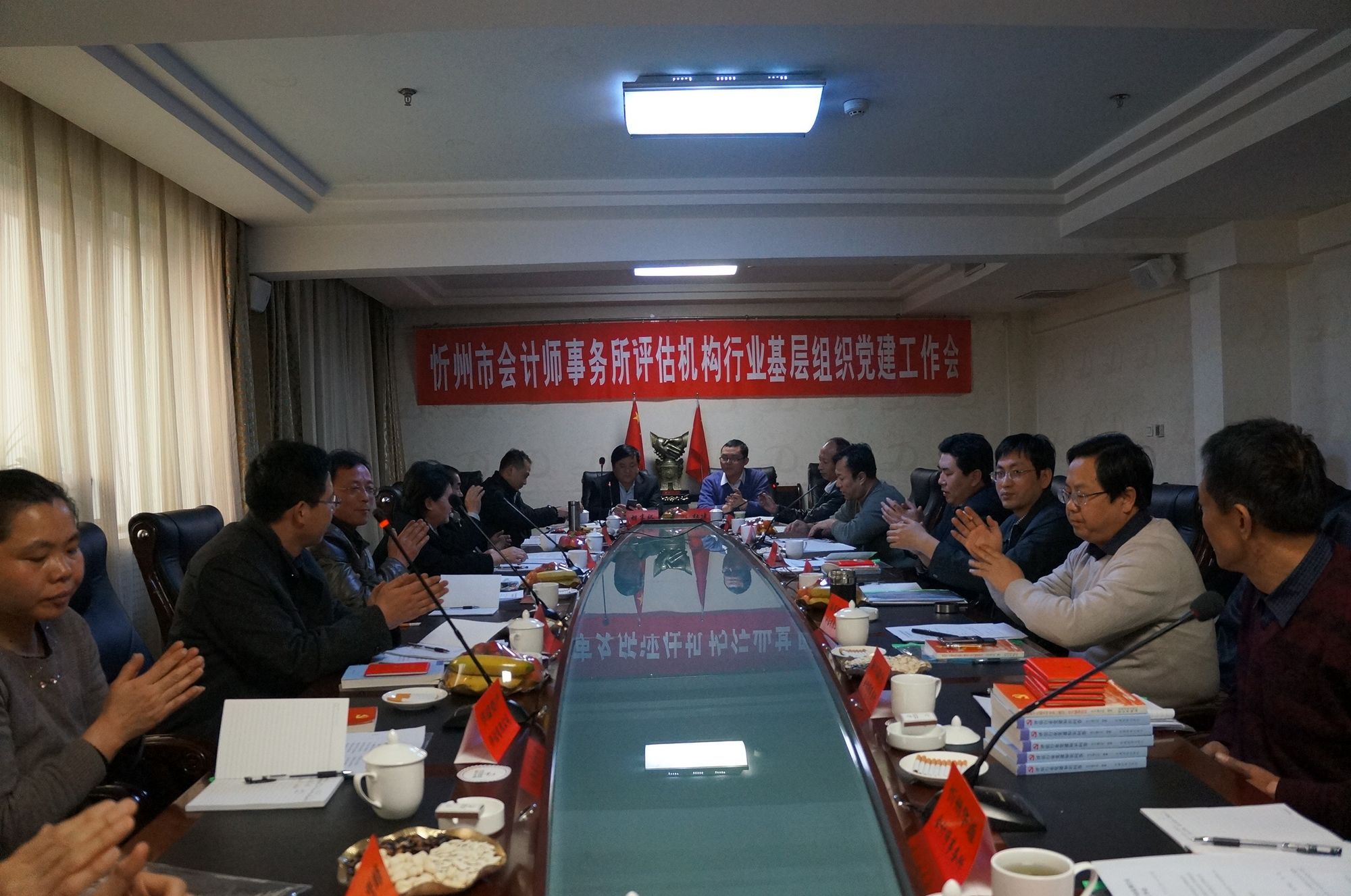 2012年3月2日,忻州市会计师事务所评估机构行业基层组织党建工作会在宁武县召开。忻州市财政局党组成员、副局长胡高裕和山西省注册会计师协会副秘书长杜建中出席会议并就行业开展基层组织建设年工作作了讲话,省行业党委办公室、忻州市财政局机关党委、忻州市财政局会计科、宁武县财政局和忻州市辖区内的会计师事务所、评估机构党支部的主要负责人共计30余人参加了会议。