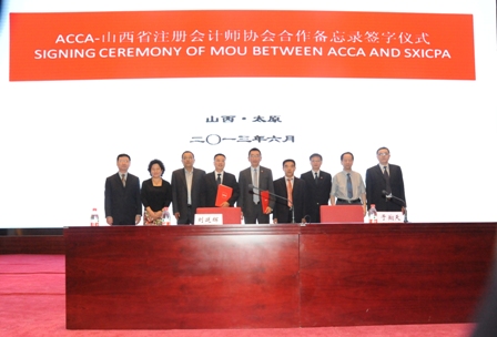 为了与国际会计组织加强专业技术与信息交流,提升对会员的培训、监管和服务水平,在重点领域达成合作意向,2013年6月7日省注协与特许公认会计师公会北京代表处在太原签署了合作备忘录,全省各会计师事务所负责人及协会秘书处工作人员共270多人见证了此次签约仪式。