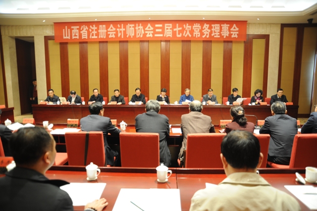 2014年11月20日,山西省注册会计师协会召开了第三届常务理事会第七次会议。经过表决,一致同意增补李志明同志为第三届理事会理事、常务理事、副秘书长,撤销了薛锦萍第三届理事会理事、常务理事职务,会议通报了协会2014年工作进展情况、2015年工作重点和上届常务理事会提议的办理情况。省财政厅副巡视员祝晋英出席会议并讲话,全省11个市的自律公约委员会主任委员、副主任委员和协会秘书处各部室主任列席了会议,张秋明会长主持会议。