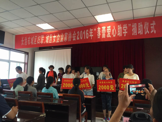 2016年8月25日,山西晋才会计师事务所梁宇英董事长参加了长治市城区妇联及女企业家协会组织的2016年“春蕾爱心助学”捐助活动,为困难学生圆大学梦出资助力。